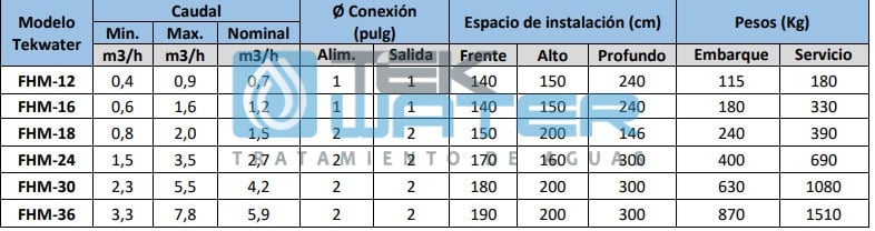 TEKWATER presta el servicio de ingeniería para dimensionar cada filtro para eliminar el hierro y el manganeso.
